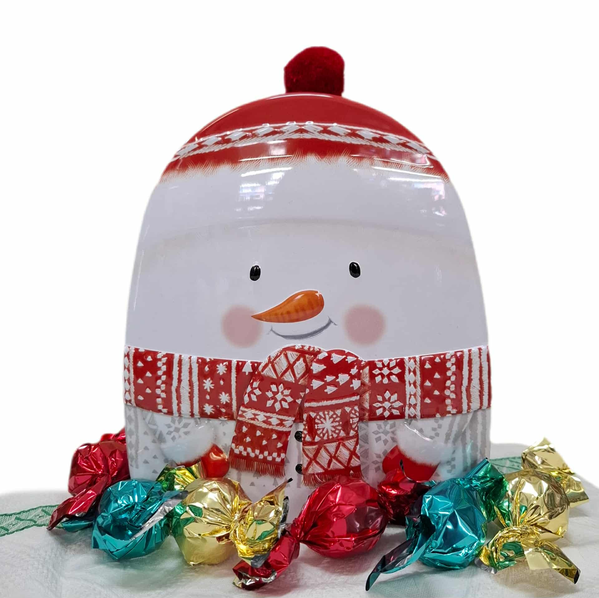 Com o seu adorável pompom no topo e um design repleto de ternura, esta lata é a personificação do espírito natalício. O simpático boneco de neve guarda no seu interior 200g de bombons de chocolate de leite — doces, cremosos e perfeitos para partilhar nos dias frios de inverno. Um presente irresistível que promete sorrisos e momentos de pura doçura.