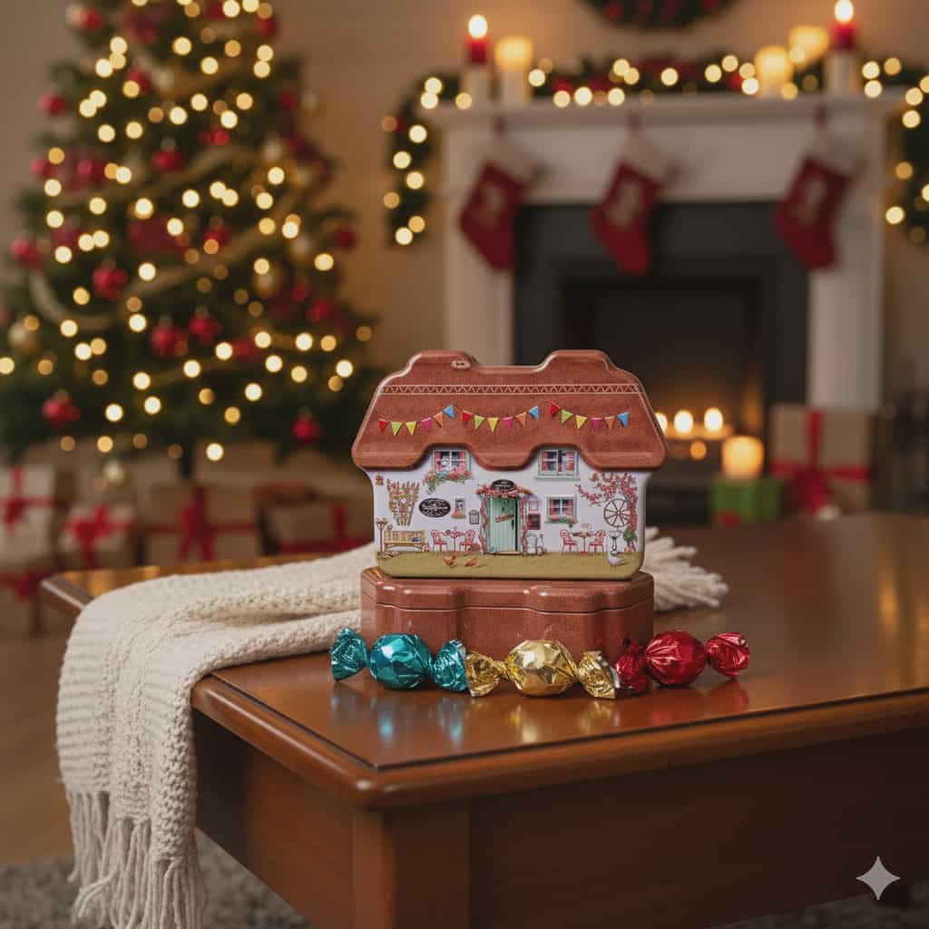 Com o encanto rústico das paisagens campestres, esta lata em forma de chalé é um convite à tranquilidade e ao sabor dos pequenos prazeres. No seu interior, guarda 200g de bombons de chocolate de leite — doces, cremosos e irresistíveis. Um presente perfeito para celebrar o Natal com simplicidade, aconchego e um toque de doçura.