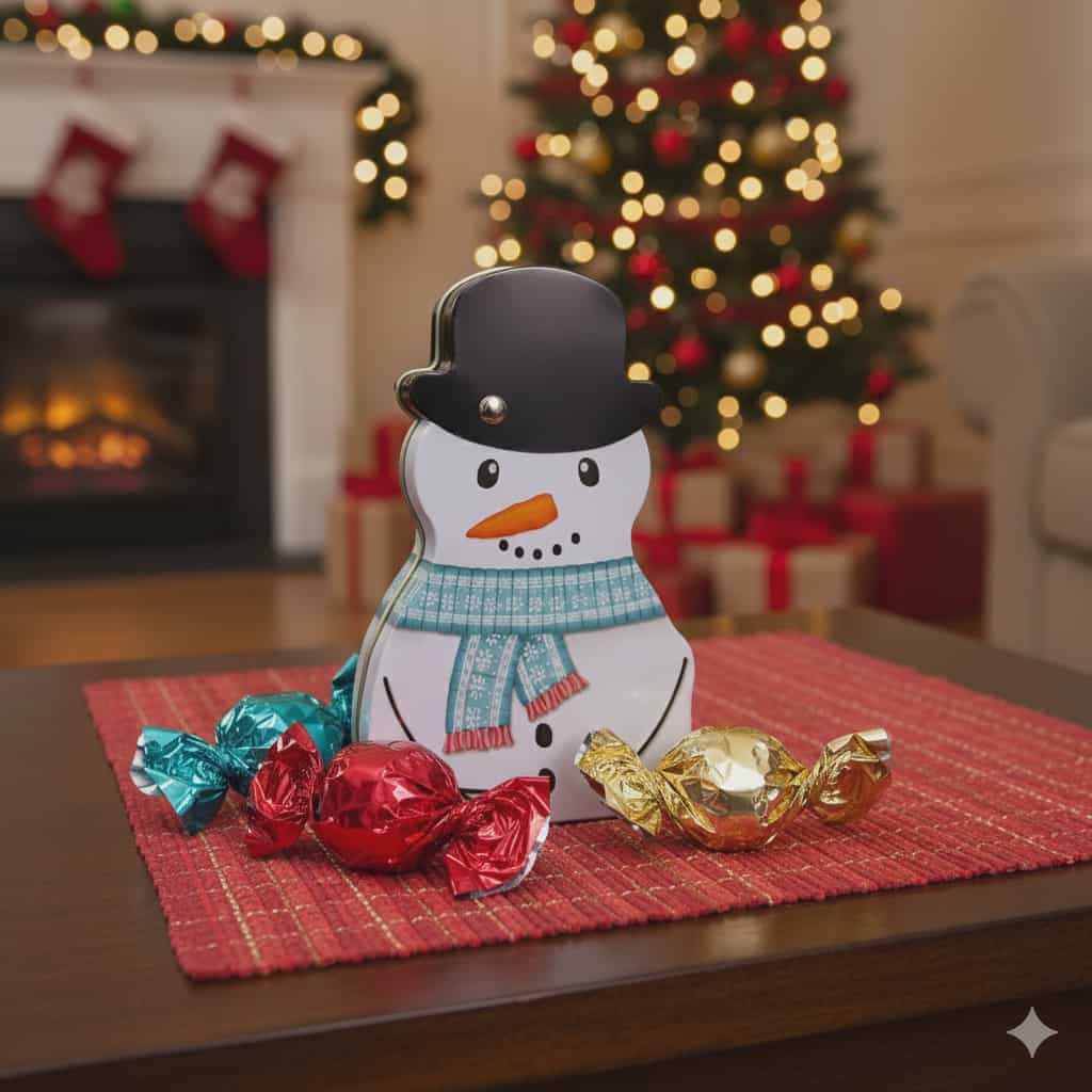Cheia de charme e espírito festivo, esta lata em forma de boneco de neve traz um toque divertido ao Natal — o seu chapéu móvel torna-a ainda mais especial! No interior, esconde 70g de bombons de chocolate de leite — doces, cremosos e perfeitos para adoçar os dias frios da estação. Um presente encantador para oferecer ou colecionar.