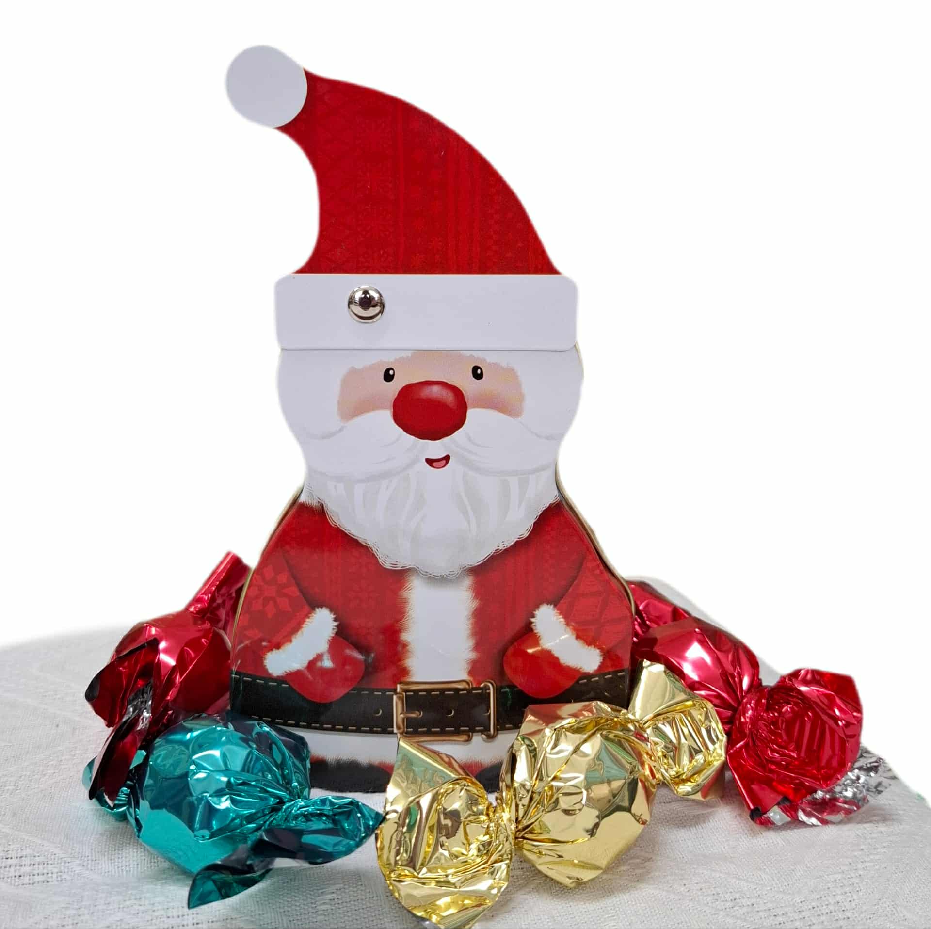 Cheia de alegria e espírito natalício, esta divertida lata em forma de Pai Natal é um verdadeiro encanto. O seu chapéu móvel dá-lhe um toque especial e torna-a perfeita para oferecer nesta época mágica. No interior, guarda 70g de bombons de chocolate de leite — suaves, cremosos e irresistíveis. Um presente doce que conquista à primeira vista.