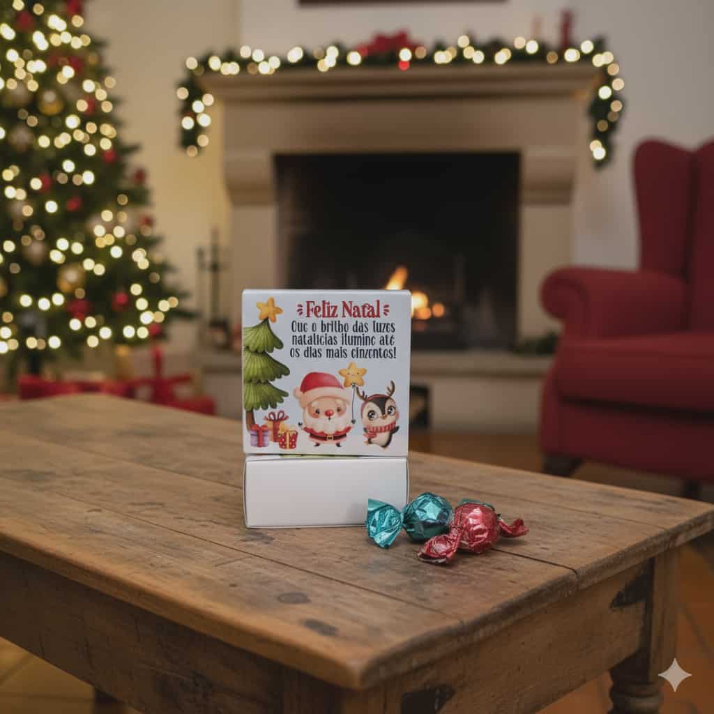 Com a mensagem “Que o brilho das luzes natalícias ilumine até os dias mais cinzentos”, esta caixa transmite a esperança e a magia que tornam o Natal tão especial. Um presente cheio de luz, pensado para aquecer corações e espalhar alegria. No seu interior, guarda 80g de bombons de chocolate de leite (6 unidades) — doces, cremosos e perfeitos para saborear ou oferecer.