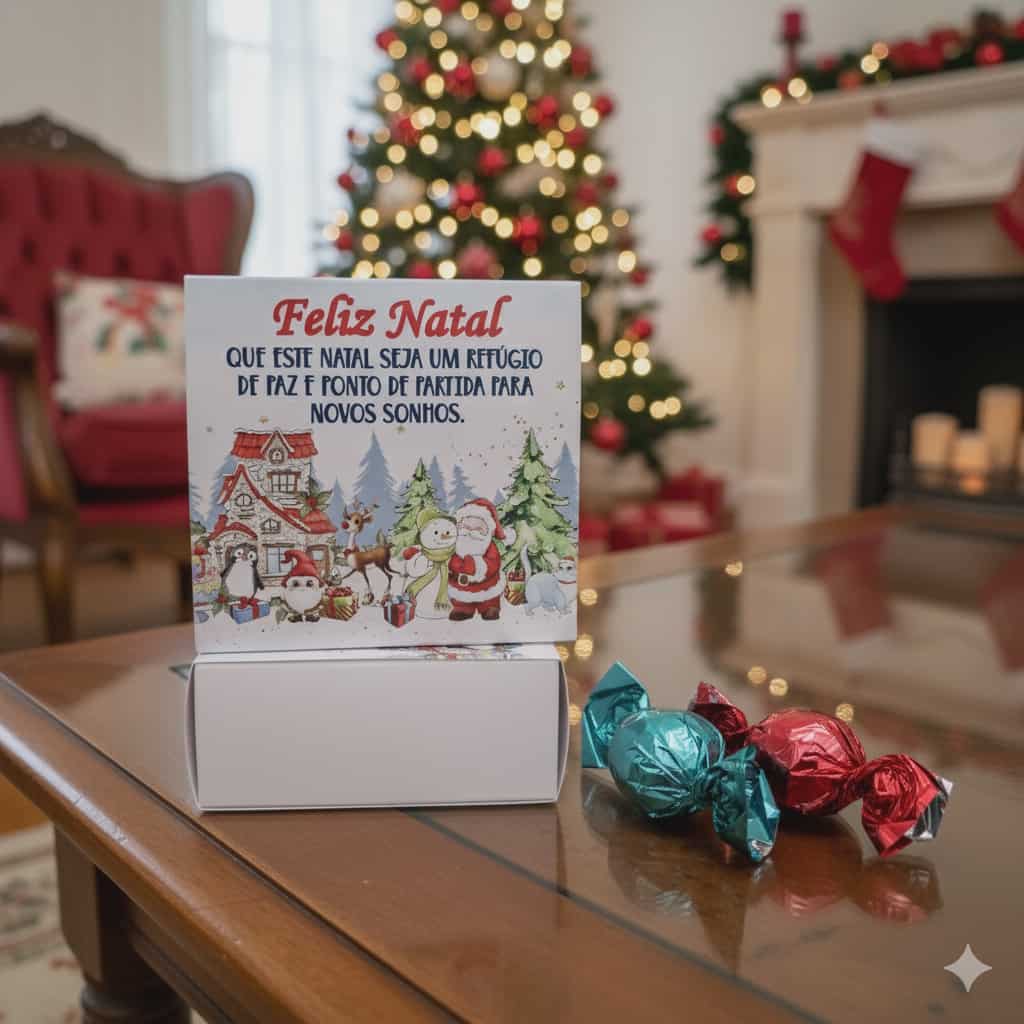 Com a mensagem “Que este Natal seja um refúgio de paz e ponto de partida para novos sonhos”, esta caixa celebra a tranquilidade e a renovação que a época inspira. Um presente cheio de significado, perfeito para oferecer a quem mais estimamos. No seu interior, guarda 80g de bombons de chocolate de leite (6 unidades) — suaves, cremosos e envolventes.