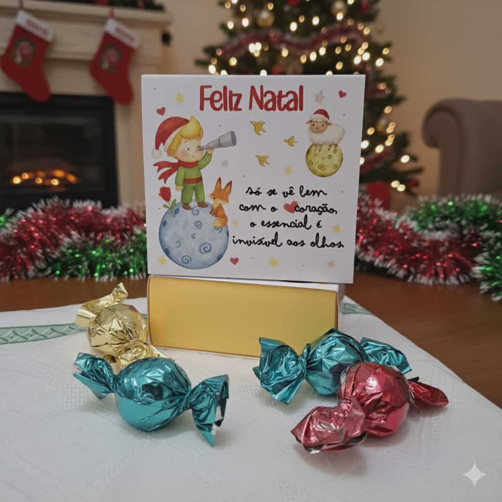 Inspirada na célebre frase do Principezinho — “Só se vê bem com o coração, o essencial é invisível aos olhos” — esta caixa celebra a ternura, a simplicidade e a beleza dos gestos genuínos. Um presente doce e simbólico, perfeito para oferecer a quem dá sentido aos nossos dias. No seu interior, guarda 80g de bombons de chocolate de leite (6 unidades) — suaves, cremosos e irresistíveis.