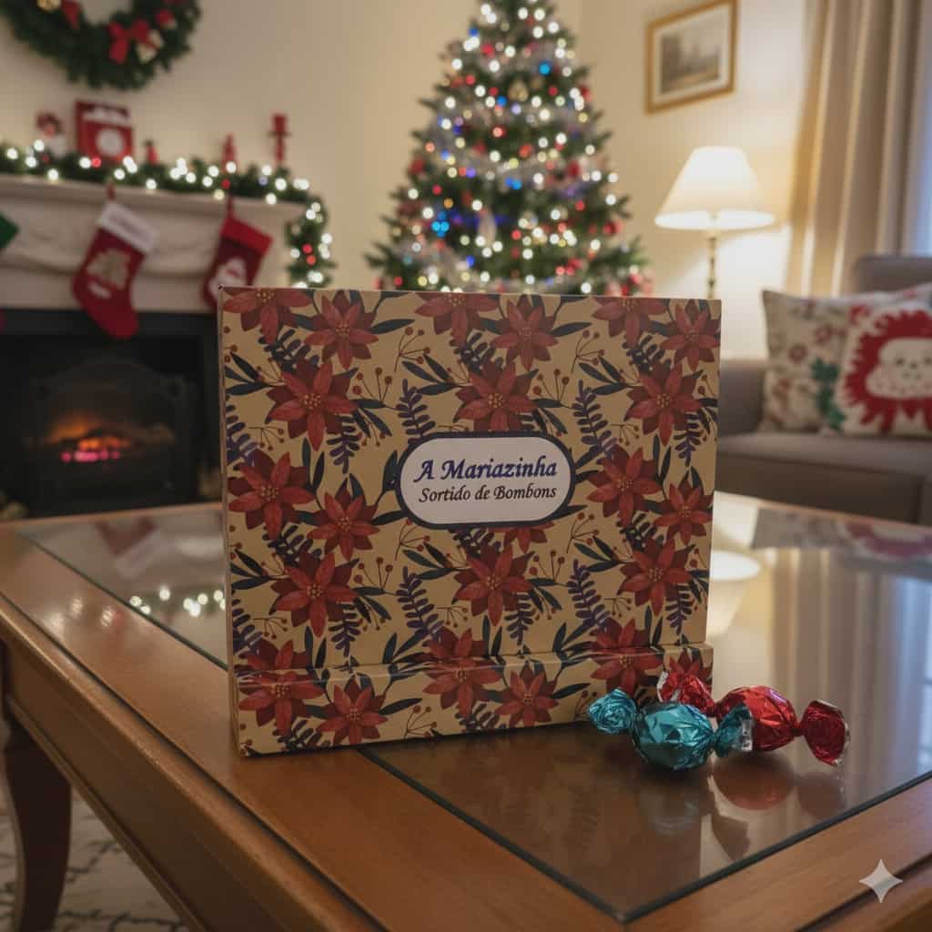 Uma caixa elegante e festiva, decorada com as tradicionais flores vermelhas de Natal, que celebra o encanto e a doçura desta época. No seu interior, encontra um delicioso sortido composto por bombons de chocolate de leite (12 unidades) e bombons de chocolate de leite com pistáchio (4 unidades) — uma combinação perfeita de texturas e sabores.