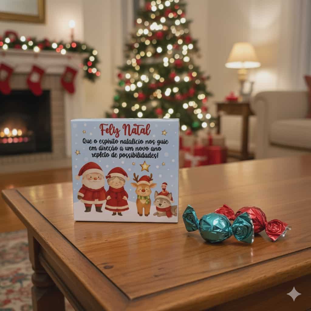 Com a mensagem “Que o espírito natalício nos guie em direção a um novo ano repleto de possibilidades”, esta caixa celebra a esperança, a renovação e os novos começos. Um presente simbólico e inspirador, ideal para partilhar votos de um futuro doce e promissor. No seu interior, guarda 80g de bombons de chocolate de leite (6 unidades) — suaves, cremosos e perfeitos para saborear em qualquer momento.