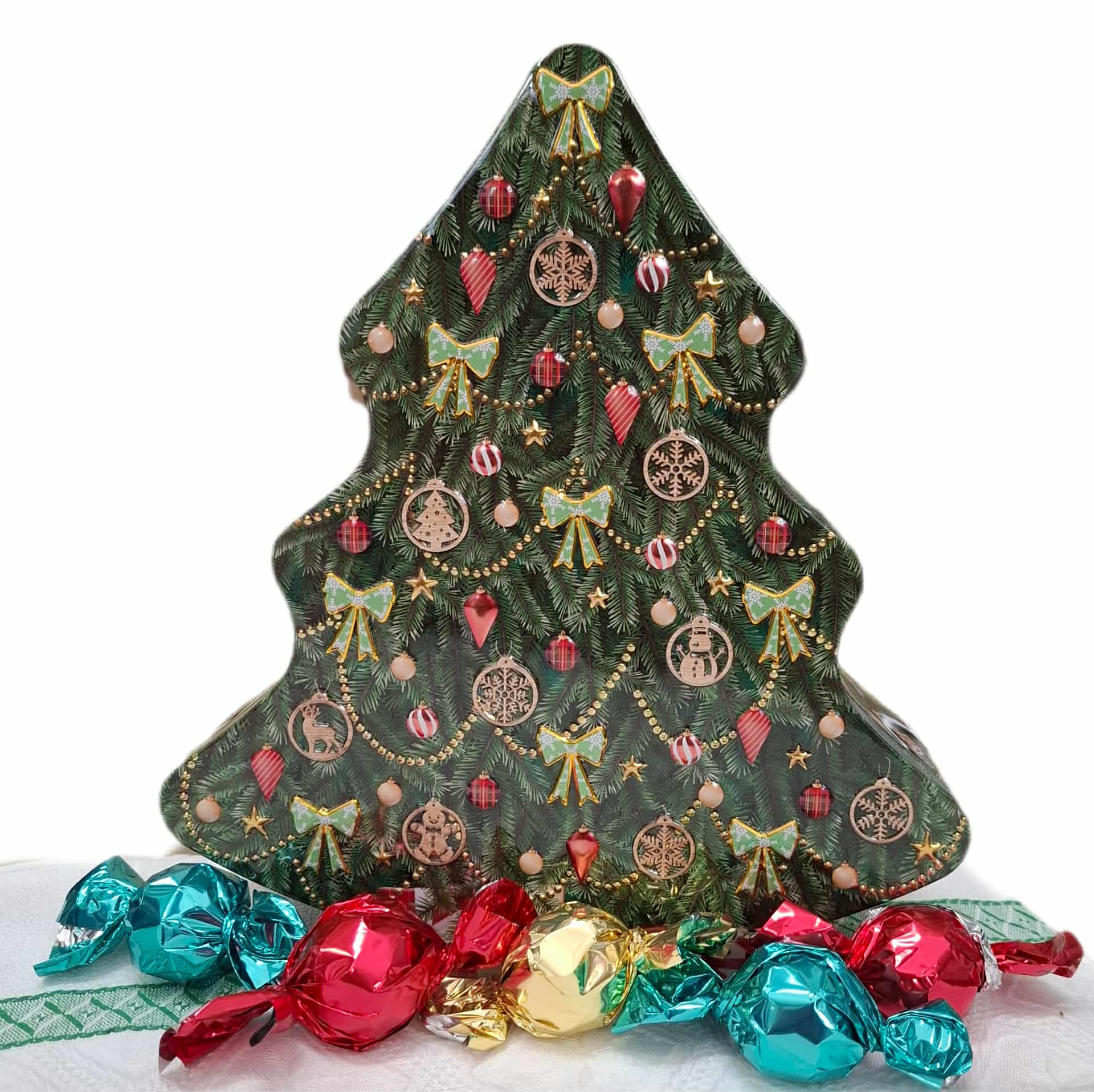 Símbolo maior da quadra, a árvore de Natal ganha nova vida nesta charmosa lata festiva. Repleta de detalhes encantadores, é o presente ideal para partilhar momentos doces e cheios de magia. No seu interior, encontra 250g de bombons de chocolate de leite — suaves, cremosos e absolutamente irresistíveis.
