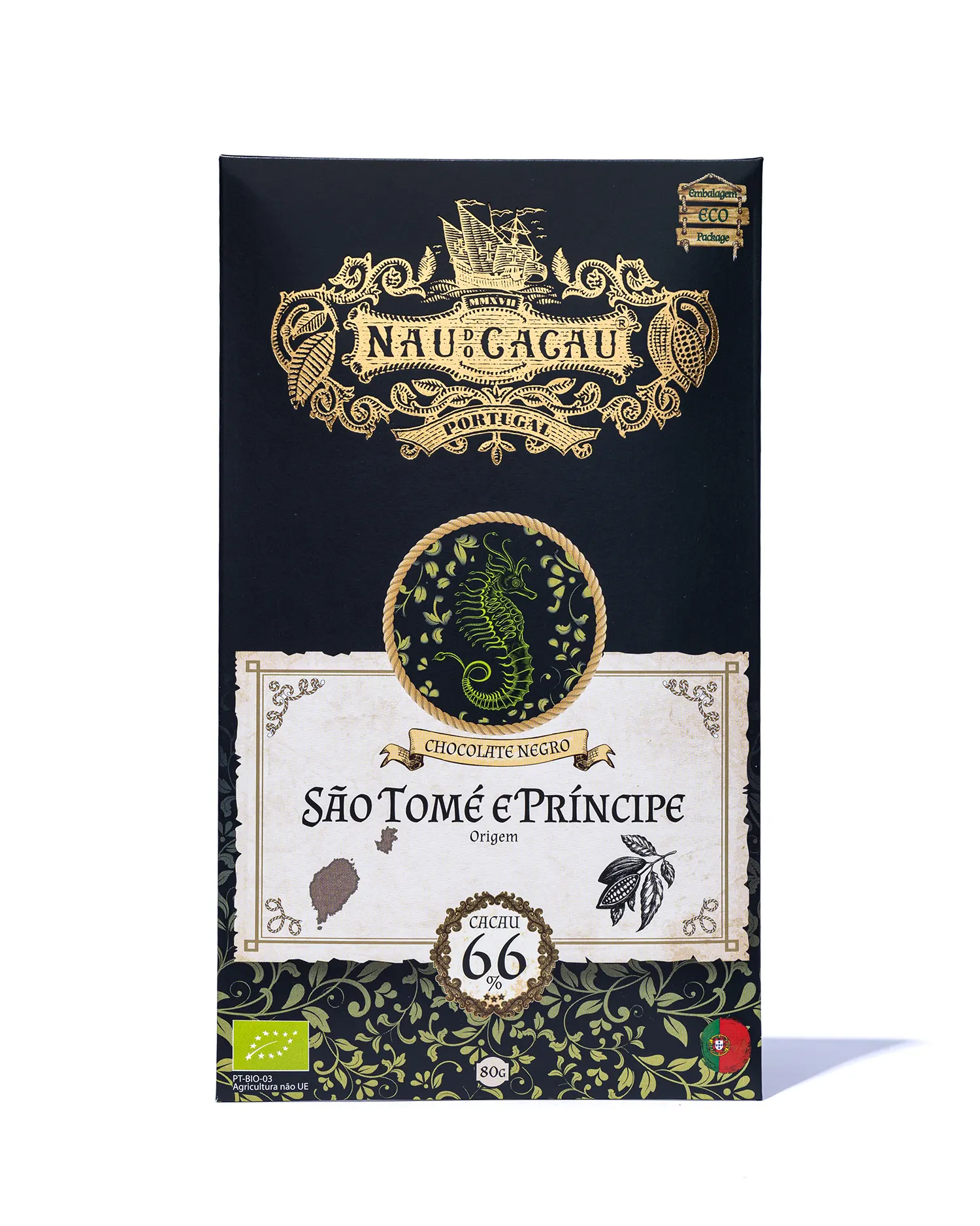 Chocolate artesanal biológico português, feito a partir de cacau puro de origem, proveniente de São Tomé e Príncipe — uma das regiões mais emblemáticas na história do cacau. Representando apenas 0,1% da produção mundial, este cacau raro distingue-se pelo seu sabor excecional, com notas frutadas intensas e uma elegância natural que encanta os verdadeiros apreciadores de chocolate negro.